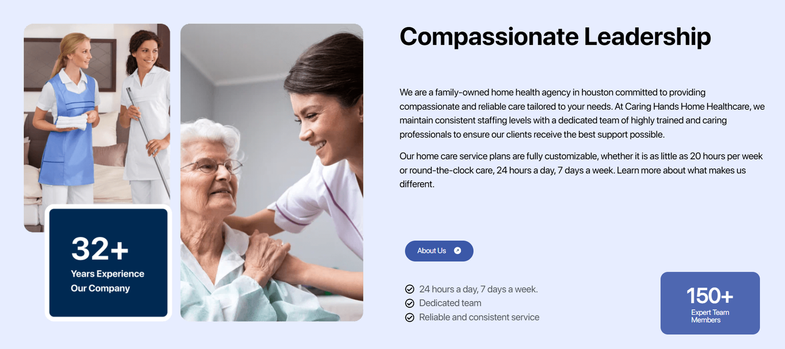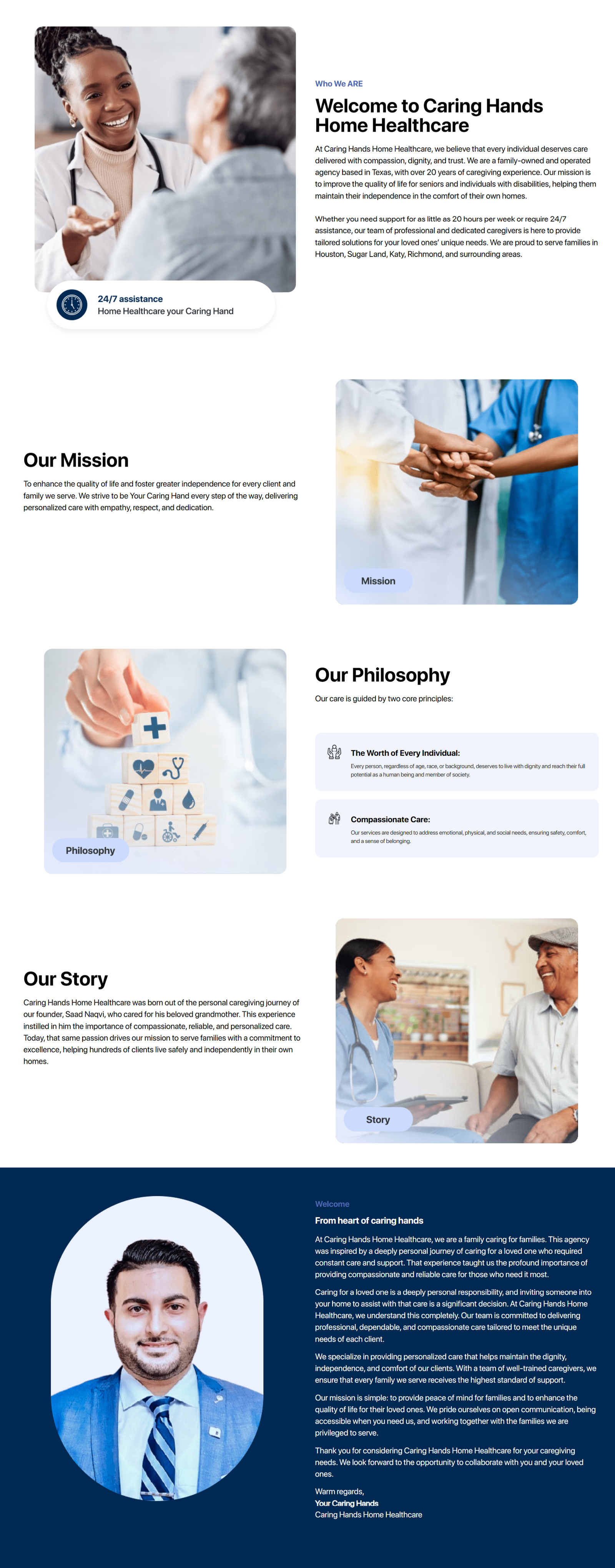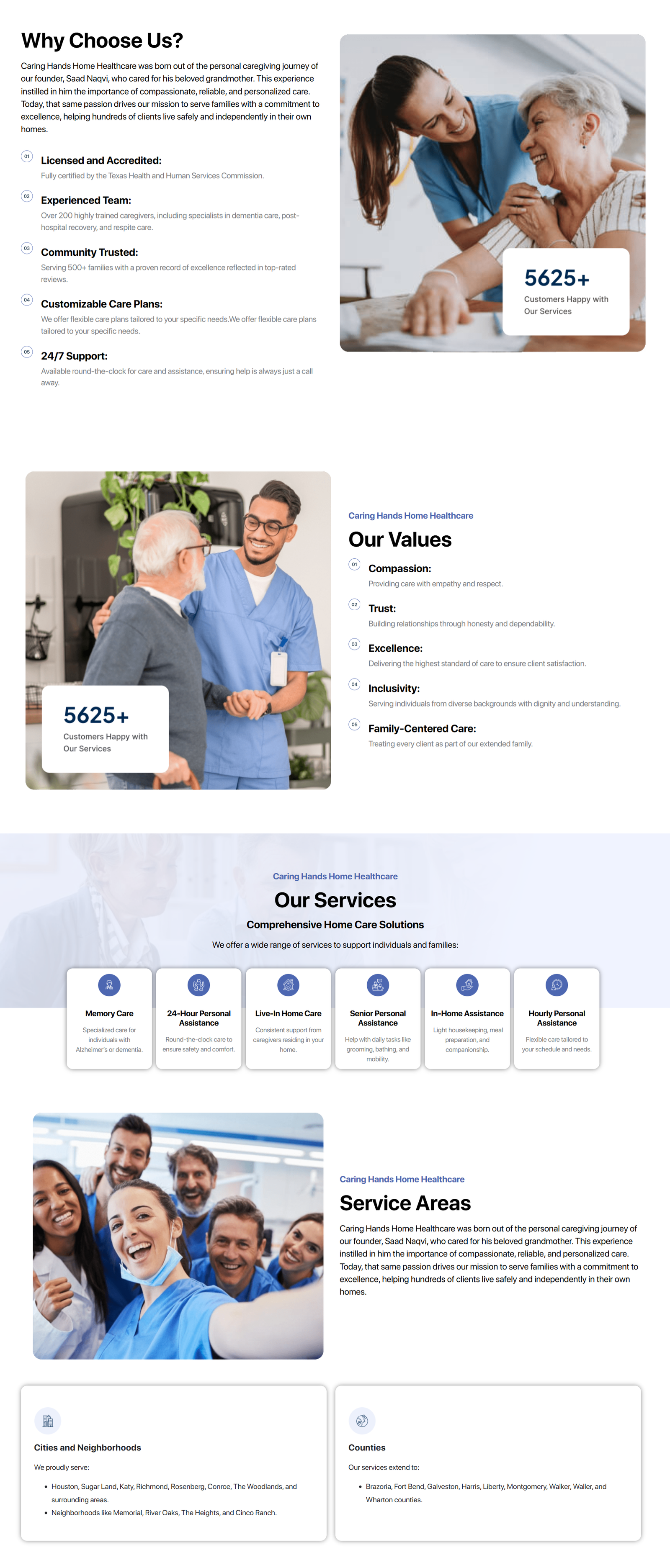Caring Hands Home Healthcare is a U.S.-based provider of non-medical services, catering to the needs of individuals who require compassionate care in the comfort of their homes. To strengthen its online presence and streamline its digital operations, Caring Hands partnered with our marketing agency to create a comprehensive and secure digital ecosystem. This project encompassed web design and development, search engine optimization, social media management, and advanced integrations for seamless functionality and enhanced client experience.
