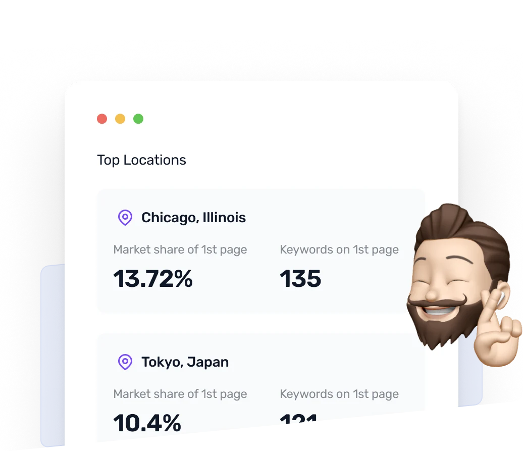 - 90% of targeted keywords rank in the Top 3 positions.